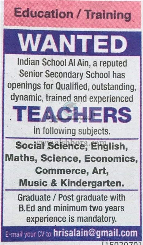 تعلن مدارس العين الإماراتية عن وظائف جديدة للمعلمين والمعلمات وذلك وفقا لنص الإعلان التالي:-