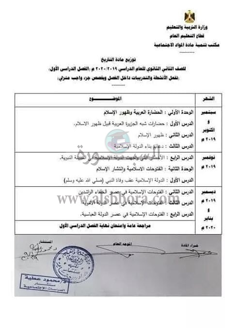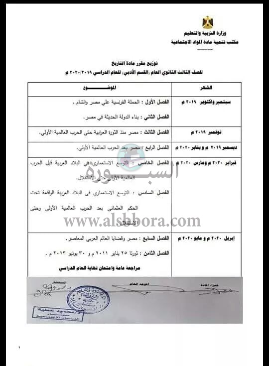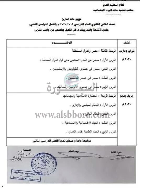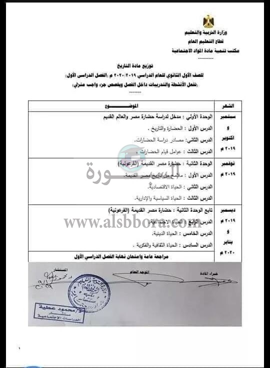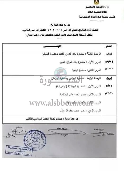 ينشر موقع السبورة توزيع مناهج الفصليين الدراسيين لمادة التاريخ للعام الدراسى 2020/2019، وجاء كالتالى: