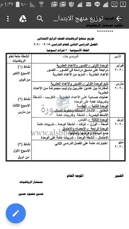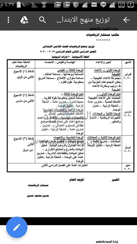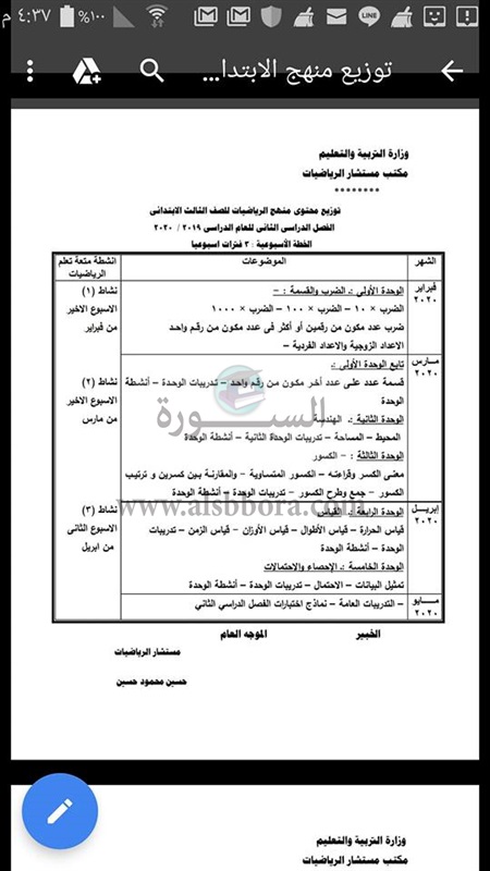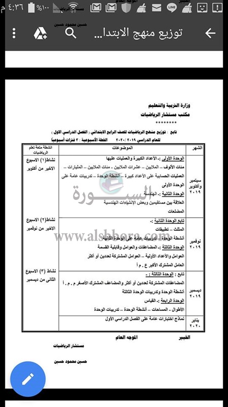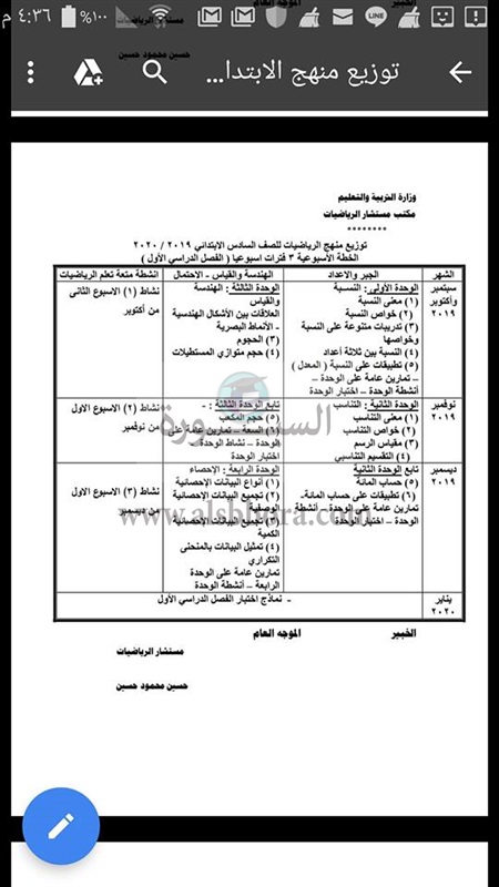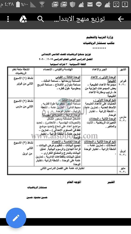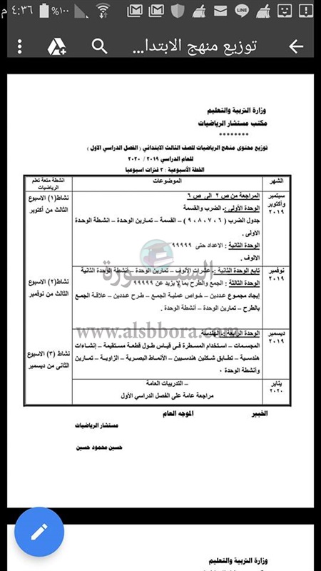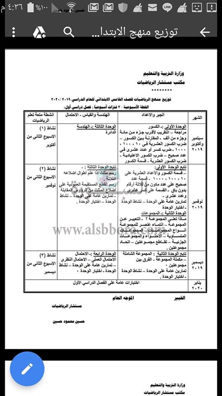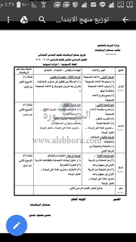 ننشر توزيع منهج الرياضيات لجميع صفوف المرحلة الابتدائية 2020/2019