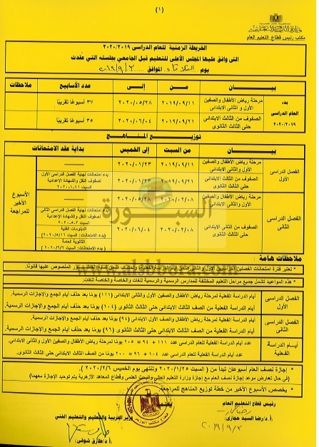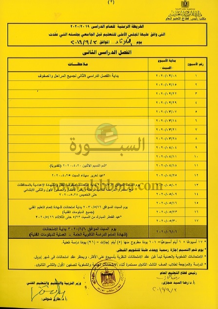 عاجل| التعليم تعلن عن الخريطة الزمنية للعام الدراسي الجديد 2019 / 2020.. "مستند"