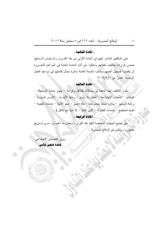 نشرت الجريدة الرسمية في عددها رقم 199، الصادر في 8 سبتمبر 2019، قرار وزارة التضامن الاجتماعي رقم 293 لسنة 2019.