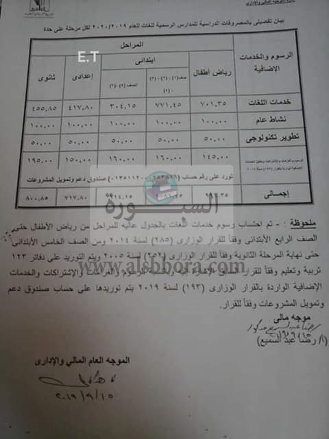 عاجل| محافظه القاهره تعلن مصروفات مدارس اللغات الرسمية :"رياض اطفال 996 جنيها.. والابتدائى 1081 جنيها".. "مستند"
