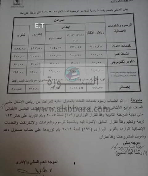 بيان عاجل بشأن المصروفات الدراسية للمدارس الرسمية لغات والمدارس الرسمية المتميزة للغات رياض اطفال 996 جنيها.. والابتدائى 1081 جنيها.. مستند