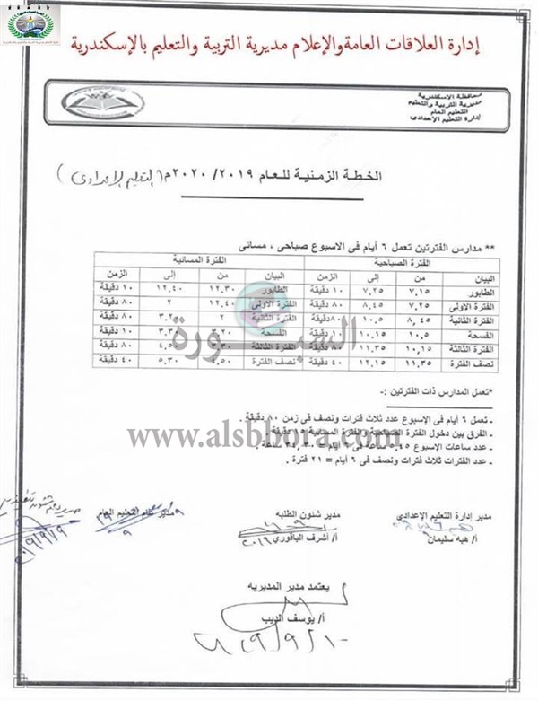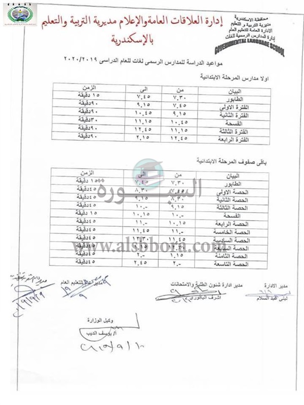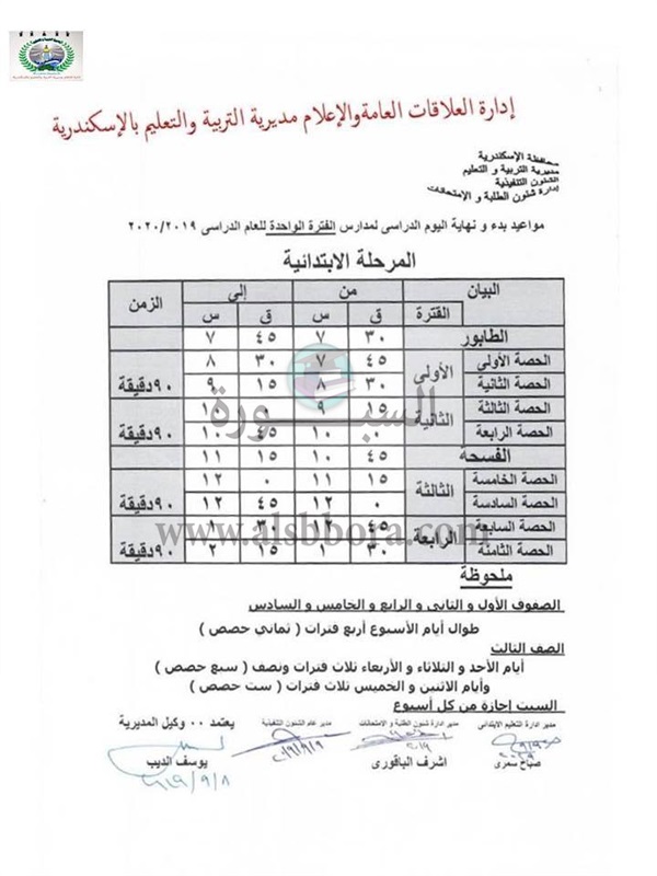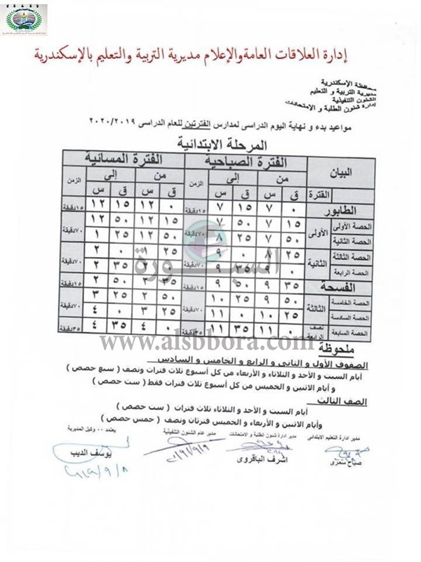 عاجل| مواعيد بدء ونهاية اليوم الدراسى لجميع المراحل للعام الدراسي ٢٠٢٠/٢٠١٩ "مستند"