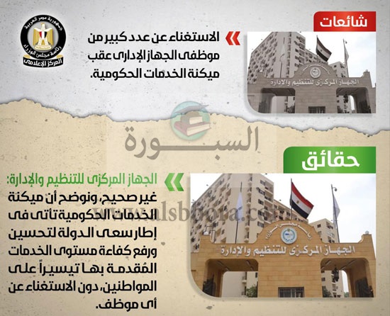 وأوضح الجهاز المركزى للتنظيم والإدارة، أن هذه الأمر غير صحيح، وأن ميكنة الخدمات الحكومية تأتى فى إطار سعى الدرلة لتحسين ورفع كفاءة مستوى الخدمات المقدمة بها، تيسيرا على المواطنين دون الاستغناء عن أى موظف.