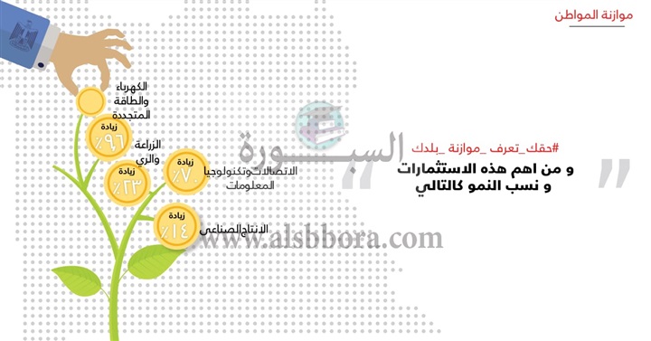 كما تعرض موازنة المواطن أهم توجهات موازنة 2019/2020 مثل المستهدفات المالية الكلية والقطاعات الدافعة للنمو الاقتصادى بالخطة الاستثمارية للتنمية الاقتصادية والاجتماعية والتى تركز على برامج تعميق التصنيع المحلى وتحفيز الاستثمار الصناعى وتحسين جودة المنتجات الصناعية، وتعزيز القدرات التنافسية للصادرات فضلًا عن التحول إلى المجتمع الرقمى وتوجيه الاستثمارات للقطاعات الإنتاجية كثيفة العمالة مع تمكين الشباب والمرأة، ومساندة المشروعات الصغيرة والمتوسطة ومتناهية الصغر التى تولد فرص عمل ودخول، ودمج تلك المشروعات والكيانات التى تعمل بالاقتصاد غير الرسمى فى الاقتصاد الرسمى.
