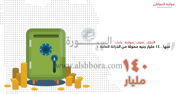 140 مليار جنيه لتمويل الاستثمارات الممولة من الخزانة العامة للدولة لتوجيه موارد إضافية لتطوير البنية التحتية لزيادة تنافسية الاقتصاد وتحسين شبكات الطرق والكهرباء والمياه والصرف الصحى.