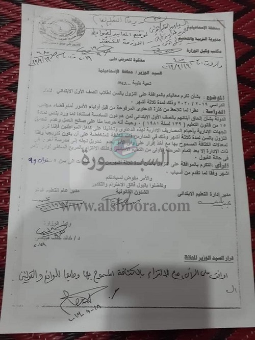 أعلنت مديرية التربية والتعليم بمحافظة الإسماعيلية عن النزول بالسن لطلاب الصف الأول الابتدائي الى 5 سنوات و9 شهور فى عدد من المدارس التى تسمح الكثافات بها بالإدارات التعليمية المختلفة.
