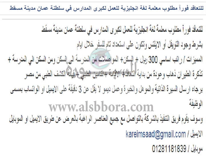تعلن مدرسة خاصة في سلطنة عمان عن وظائف جديدة للمعلمين والمعلمات وفقا لنص الإعلان التالي:-