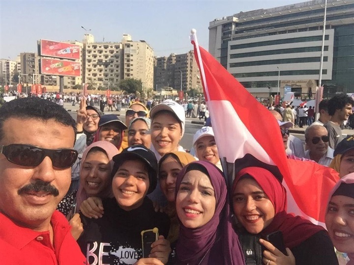 وتحركت مسيرة شباب جامعة قناة السويس منذ الصباح الباكر إلى النصب التذكاري في مدينة نصر للمشاركة بوقفة "في حب مصر".