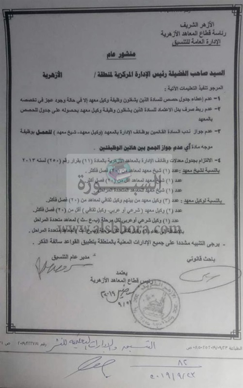 اصدر قطاع المعاهد الازهرية منشور هام بخصوص جدول الحصص والندب لسد العجز وصرف بدل الاعتماد وجاءت التعليمات كالتالي: