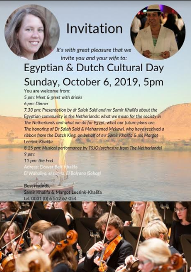 وأضاف خليفة أن الاحتفال سيشتمل أيضًا على تكريم عدد من المصريين في هولندا الحاصلين على "نوط الملك بدرجة فارس"، بجانب عرض فيلم قصير عن السياحة المصرية بهدف تشجيع الهولنديين على زيارة مصر.