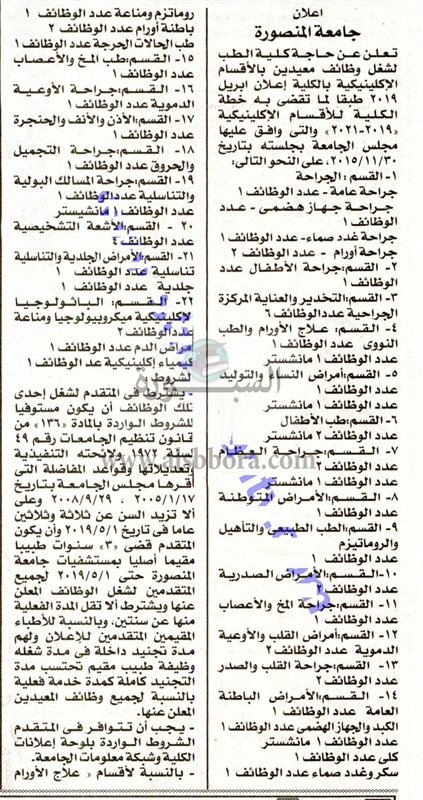 تعلن جامعة المنصورة عن مسابقة جديدة للتعاقد علي أعضاء هيئة تدريس جدد "من معيد إلي أستاذ" وذلك وفقا لنص الإعلان لجميع التخصصات المطلوبة_