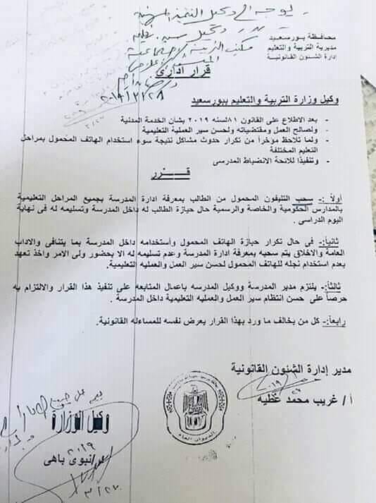 اصدرت مديرية التربية والتعليم بمحافظة بورسعيد قرارا بقضى بعد السماح للطلاب باستخدام التليفون المحمول داخل المدرسة