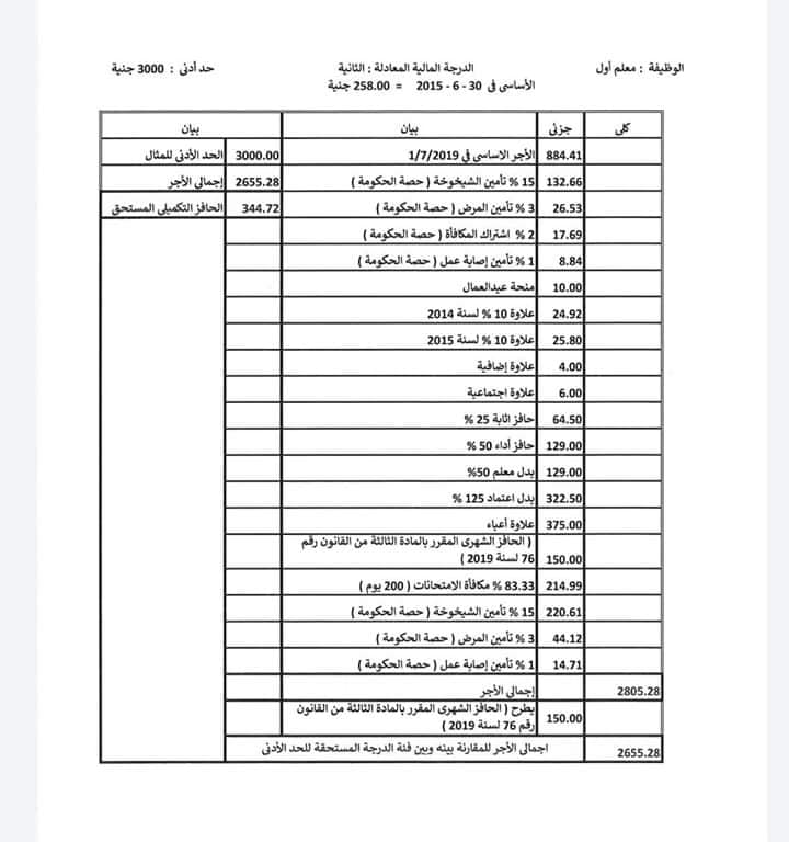 المالية تعدل طريقة حساب الحد الادنى للاجور للموطفين والمعلمين.. مستند