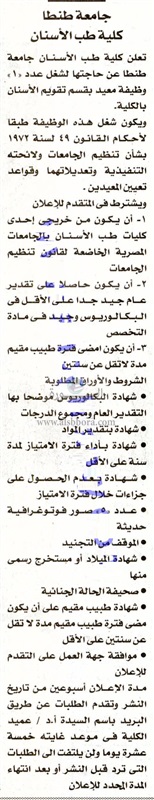 تعلن جامعة طنطا عن مسابقة جديدة للتعاقد علي أعضاء هيئة تدريس جدد "من معيد إلي أستاذ" وذلك وفقا لنص الإعلان التالي:-