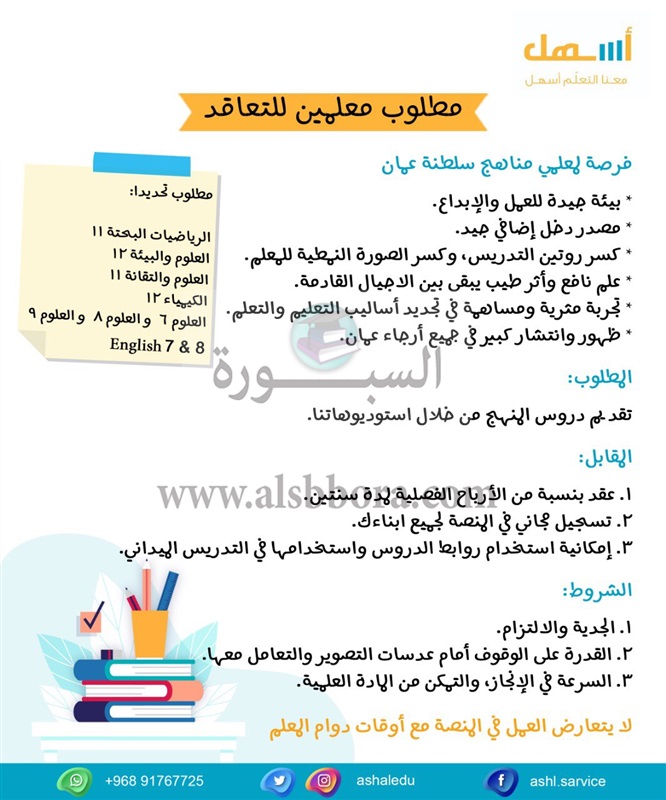 عاجل| كبري المدارس العمانية تعلن عن وظائف جديدة للمعلمين والمعلمات.. ننشر نص الإعلان
