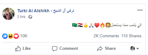 وكتب تركى آل الشيخ على صفحته الرسمية بموقع التواصل الاجتماعي "فيس بوك": "الي يلعب معنا يستحمل"