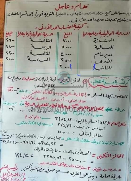 عاجل| "الماهيات" تصدر التعليمات النهائية بشأن احتساب الحد الادنى لمرتبات المعلمين والاداريين لشهر نوفمبر المقبل