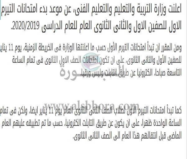ننشر قرار وزير التربية والتعليم بتحديد موعد امتحانات التيرم الاول للصفين الاول