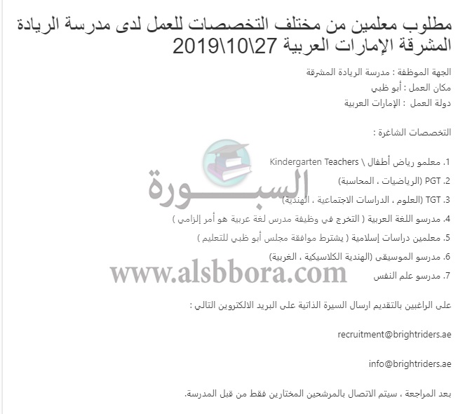 تعلن مدارس الريادة الإماراتية عن وظائف جديدة للمعلمين والمعلمات وذلك وفقا لنص الإعلان التالي:-