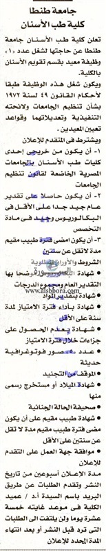 أعلنت جامعة طنطا عن مسابقة جديدة للتعاقد علي أعضاء هيئة تدريس جدد "من معيد إلي أستاذ" علما بأن أخر موعد للتقديم اليوم الخميس وذلك وفقا لنص الإعلان التالي:-