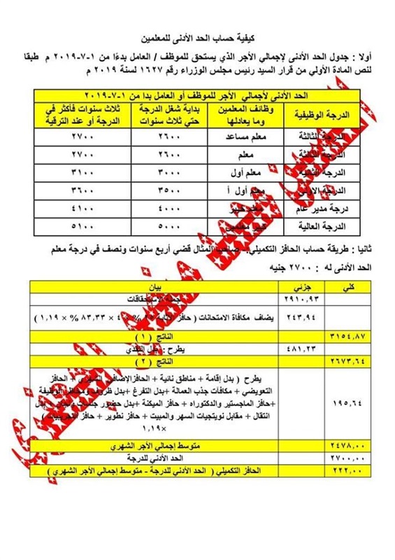 ننشر جدول الحد الادنى لاجمالى الاجر للمعلمين.. طريقة حساب الحافز التكميلى لمعلم بعد 4 سنوات ونصف.. طريقة حساب فروق الحافز التكميلى من اول يوليو الى 31 اكتوبر.. مستندات