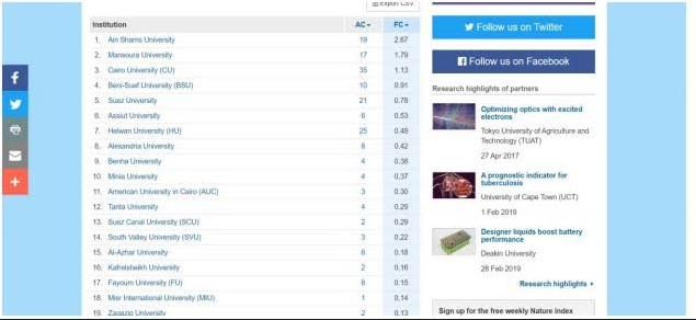 جامعة عين شمس تحقق المركز الأول فى التصنيف الدولى index Nature