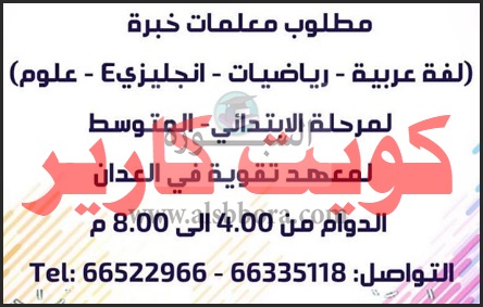 تعلن مدارس العدان الكويتية عن وظائف جديدة للمعلمين والمعلمات وذلك وفقا لنص الإعلان التالي:-