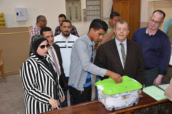 وتابع " شريف " توافد الطلاب على صناديق الإقتراع بكليات " التجارة ؛ الحقوق ؛ التربية ؛ التربية الرياضية ؛ السياحة والفنادق ؛ الطب البيطرى " ؛ مؤكدآ على أهمية المشاركة فى هذا الحدث الهام ؛ وحرص الجامعة على دعم الإتحادات الطلابية للقيام بدورها فى تمثيل الطلاب ؛ وتنظيم الأنشطة الطلابية ؛ وأهمية تحفيز الطلاب على المشاركة فيها .