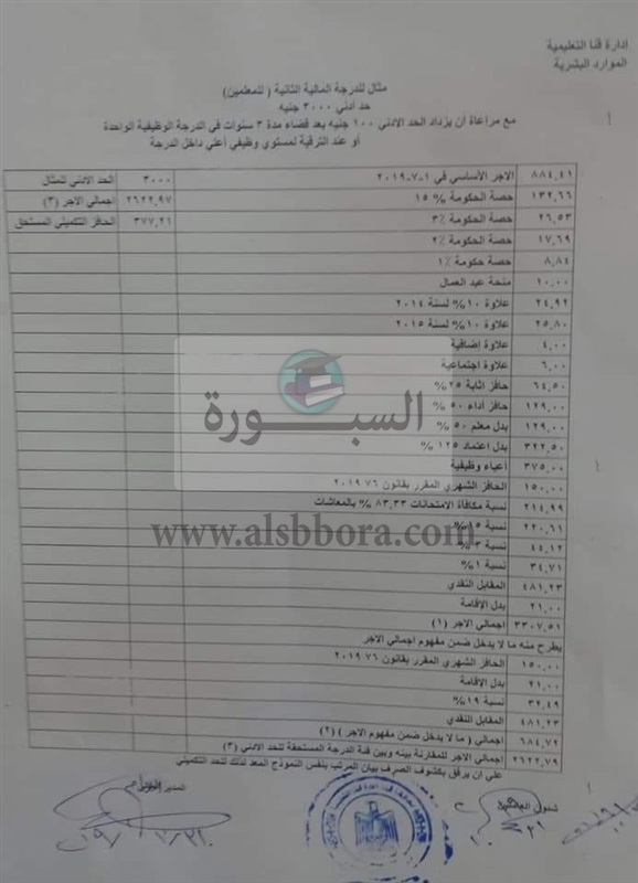 التعليم ترسل رسميا نشرة الحد الادنى للأجور للمعلمين الى اقسام ماهيات المدارس.. مستند
