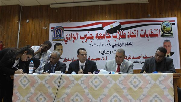 اجريت بجامعة جنوب الوادي تحت رعاية الدكتور يوسف غرباوي رئيس الجامعة والدكتور محمد ابو الفضل بدران نائب رئيس الجامعة لشئون التعليم والطلاب انتخابات اتحاد طلاب الجامعة