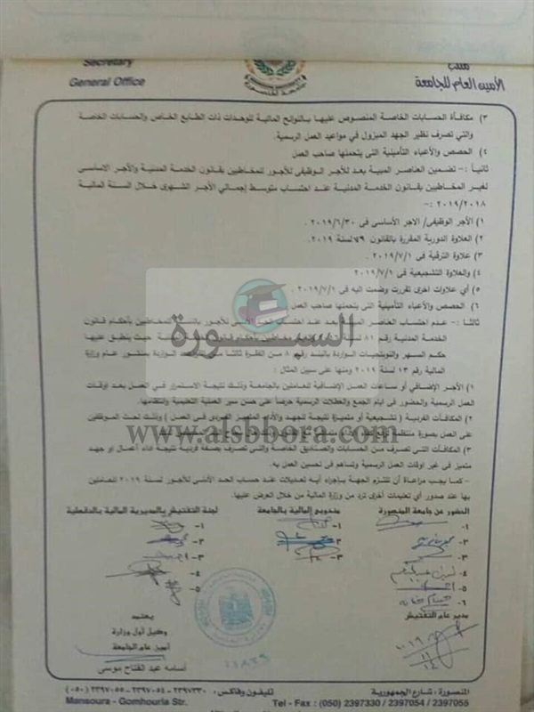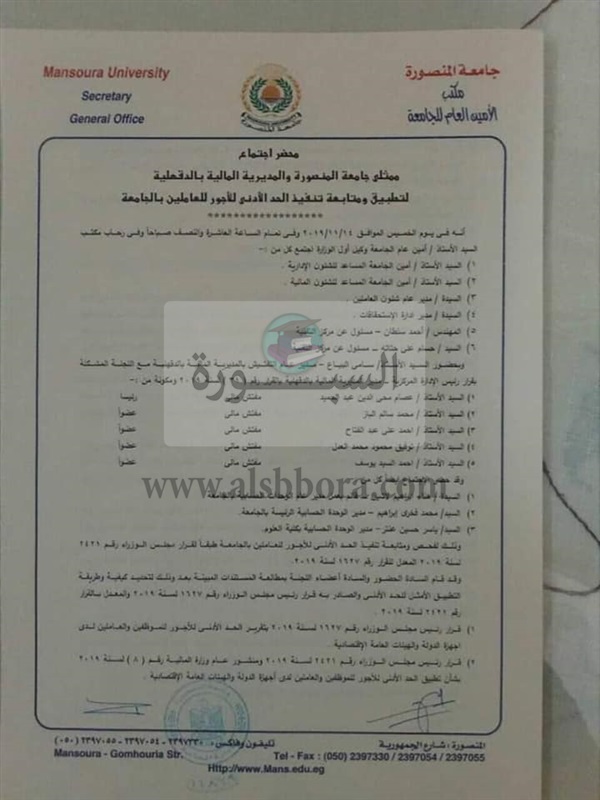 جامعة المنصورة تعلن تطبيق الحد الادنى بدون الاجر الاضافى ومكافآت الامتحانات.. مستندات