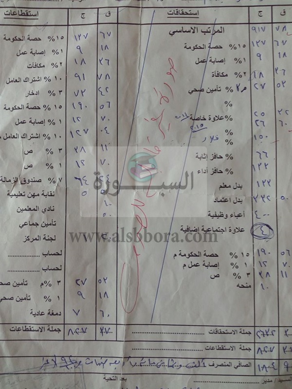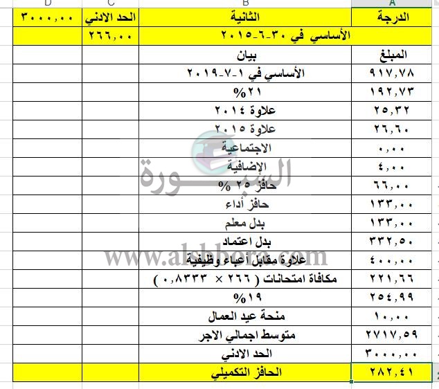 نشر نشطاء التعليم حساب الزيادة والرواتب لمعلم اول الدرجة الثانية 2017 اساسى 2015 هو 274.8 جنيه، والحد الادنى 3000 جنيه.