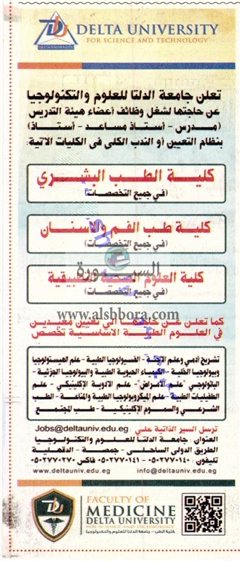 أعلنت جامعة الدلتا عن وظائف جديدة لأعضاء هيئة التدريس في جميع التخصصات وذلك وفقا لنص الإعلان التالي:-
