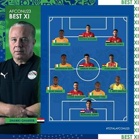 أعلن الاتحاد الإفريقي لكرة القدم اليوم السبت عن التشكيل الأفضل في كأس أمم إفريقيا تحت 23 سنة التي توج بها منتخب مصر الأولمبي.