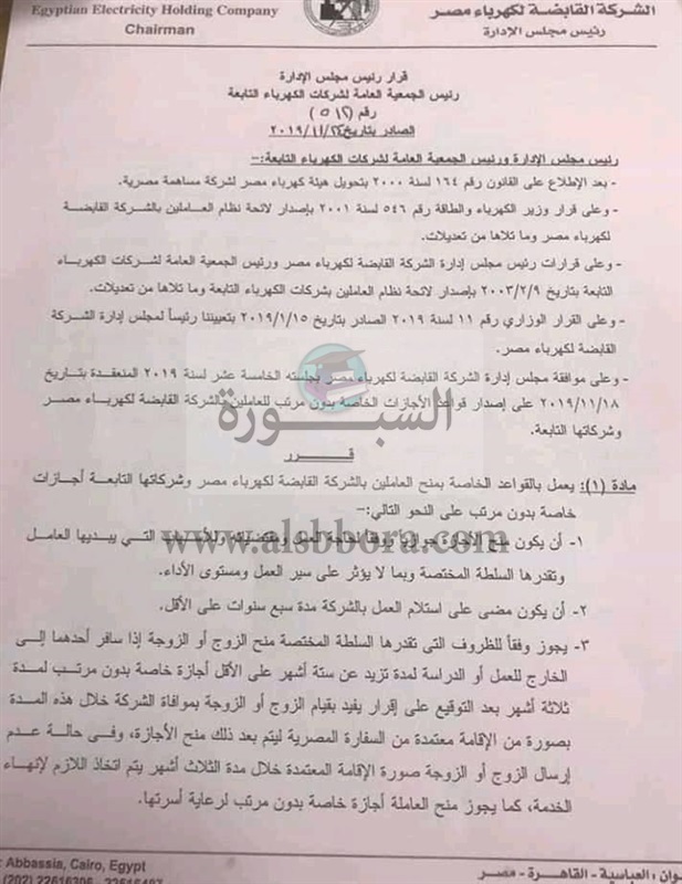 ننشر نص القرار رقم "512" لسنة 2019 والصادر من الشركة القابضة لكهرباء مصر