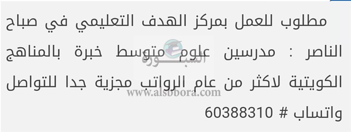 تعلن مدرسة خاصة في الكويت عن وظائف جديدة للمعلمين والمعلمات وذلك وفقا لنص الإعلان التالي:-