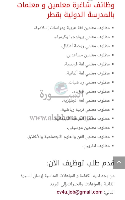 تعلن كبري المدارس الدولية القطرية عن وظائف جديدة للمعلمين والمعلمات في جميع المواد وذلك وفقا لنص الإعلان التالي:-