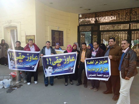 مدرسو الحصة الذين تم استبعادهم من العمل ويطلق عليهم ( المتنقطعين ) بمحافظة الدقهلية قبل ثورة 25 يناير عددهم 4 الاف ، يناشدون الدكتور محمود ابوالنصر وزير التربية والتعليم بالتدخل لحل مشكلتهم اسوة بباقي المحافظات