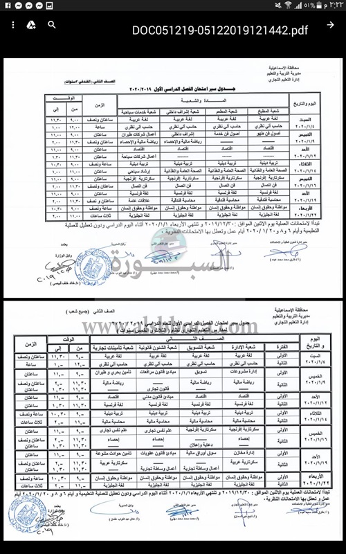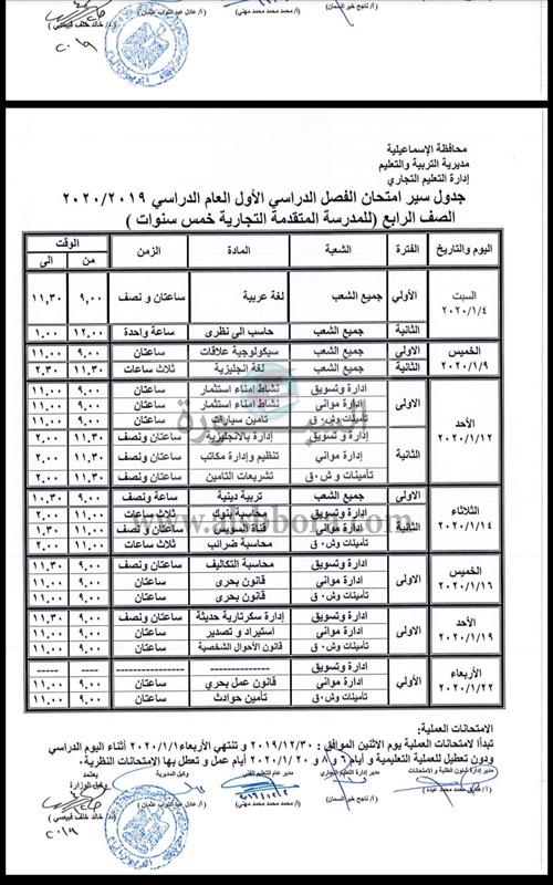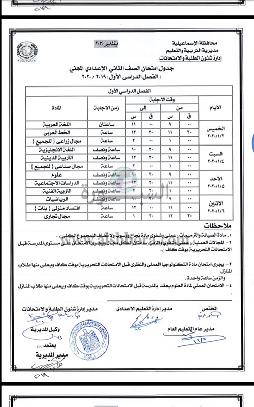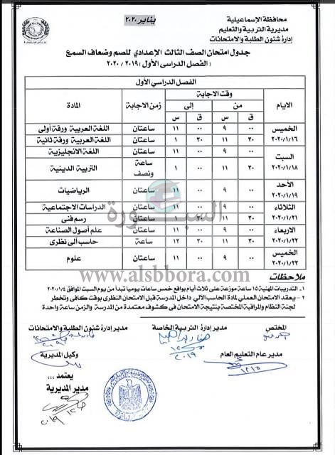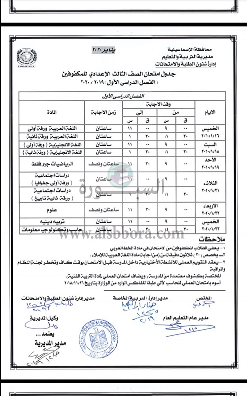عاجل| جدول امتحانات نصف العام الدراسي 2019/2020 في الإسماعيلية