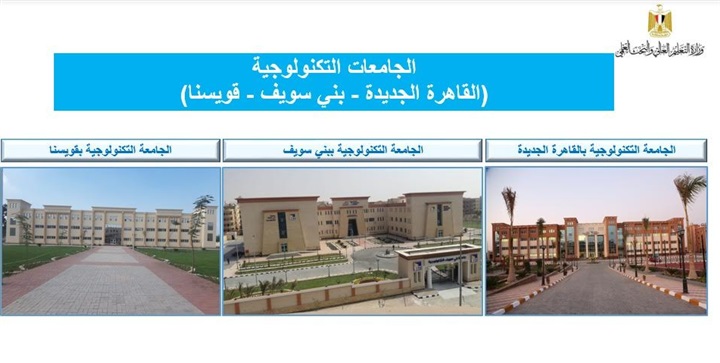 وفيما يتعلق بالجامعات التكنولوجية، فقد صدر القانون 72 لسنة 2019 بإنشاء الجامعات التكنولوجية كنقلة هامة فى استحداث مسار جديد للتعليم الفنى فى مصر وهو التعليم التكنولوجي، من خلال التدريب العملي المكثف أثناء الدراسة، ورفع قدرات الخريجين بما يتوافق ومتطلبات سوق العمل المحلية والدولية، واستحداث برامج وتخصصات جديدة يطلبها سوق العمل، وقد تم تنفيذ المرحلة الأولى والتى تضم 3 جامعات تكنولوجية بالقاهرة الجديدة، وقويسنا، وبنى سويف، من أصل 8 جامعات تكنولوجية جديدة، كما أن التخصصات المتاحة بالكليات التكنولوجية ستصل إلى 19 تخصصًا في القطاع الصناعي، و10 تخصصات في القطاع النوعي، و8 تخصصات في القطاع التجاري، و5 تخصصات في القطاع السياحي.