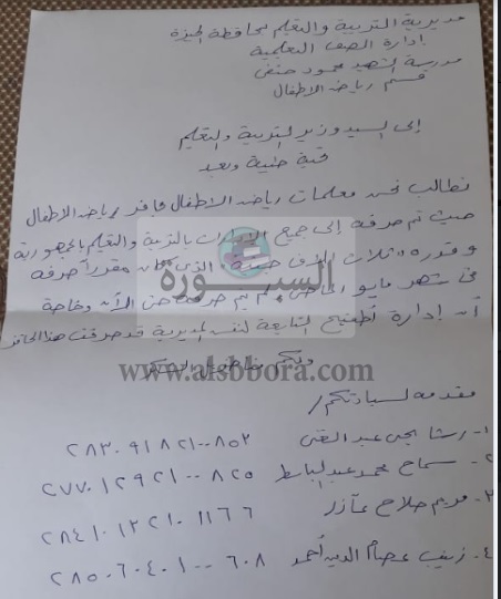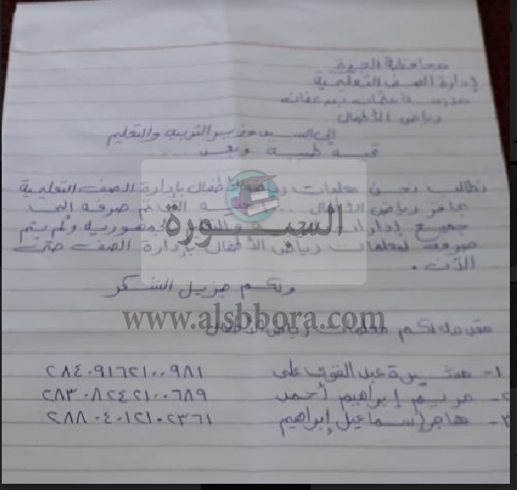 معلمو رياض الأطفال بالصف يستغيثون : الادارة لم تصرف الحافز شهر ابريل الماضى حتى اليوم.. مستندات