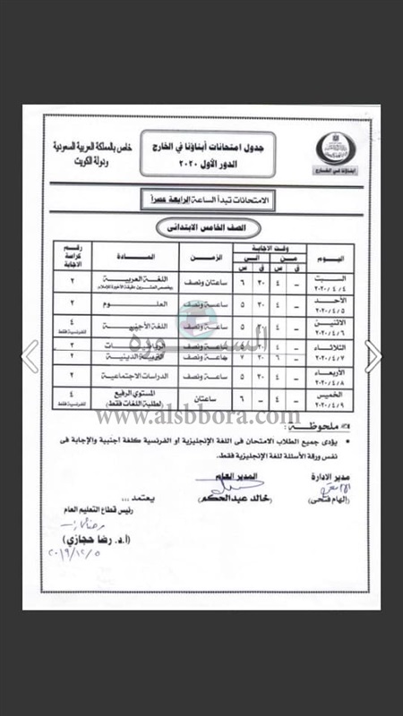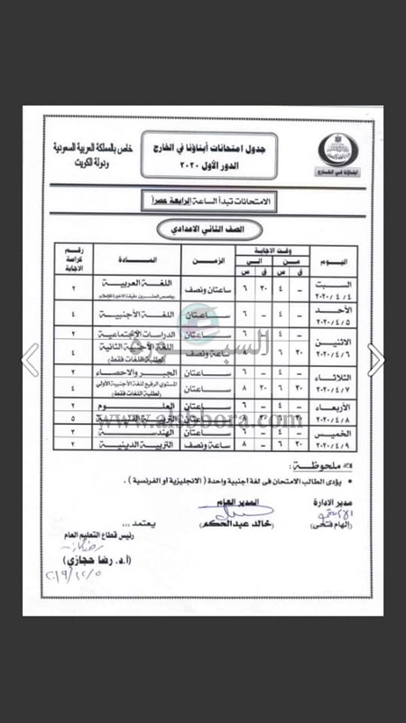 وأعلنت الوزارة جداول امتحان أبنـاؤنا فى الخـارج لــدولة عمــان 2020 ولــدولة السعـوديـة و دولة الكويت 2020، وجداول امتحان أبنـاؤنا فى الخـارج لــباقى دول العالـم.