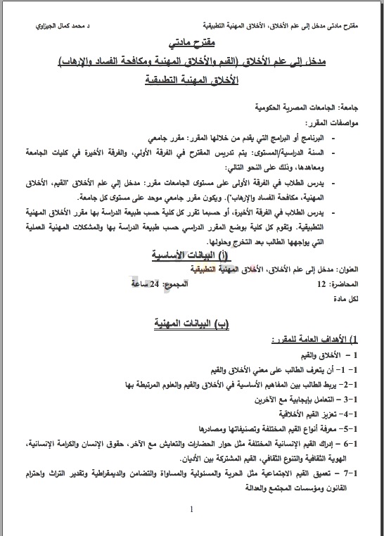 اكد الدكتور محمد كمال أستاذ القيم والأخلاق بكلية الآداب جامعة كفر الشيخ، أنه سيتم تقديم مقترح مادة الاخلاق لوزير التعليم العالي وأمين المجلس الأعلى للجامعات، كما سيتم تقديم المقترح الخاص بالتربية والتعليم إلى وزير التربية والتعليم، مشيرًا إلى أن المقترح الذي سبق تقديمه كان يقوم بتطويره بشكل مستمر بما يتناسب مع المتغيرات المختلفة مع وجود ثوابت فيه.