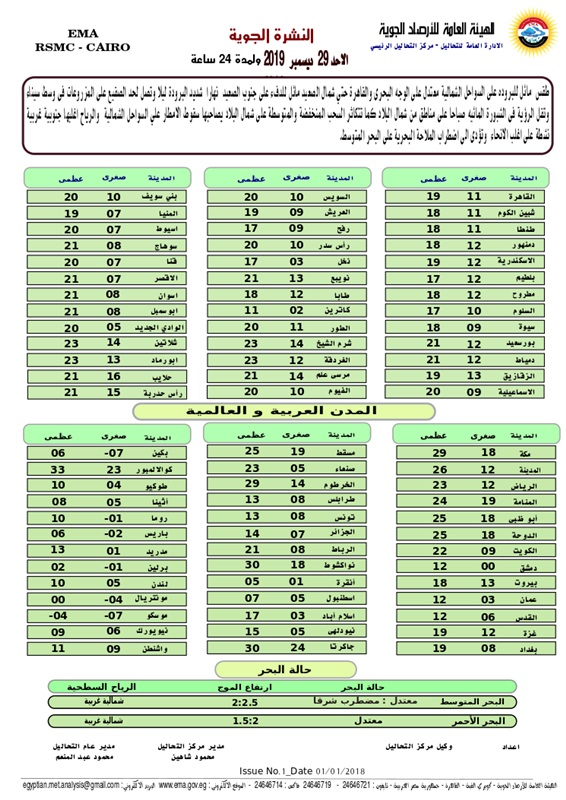 وفيما يلى بيان بدرجات الحرارة اليوم: