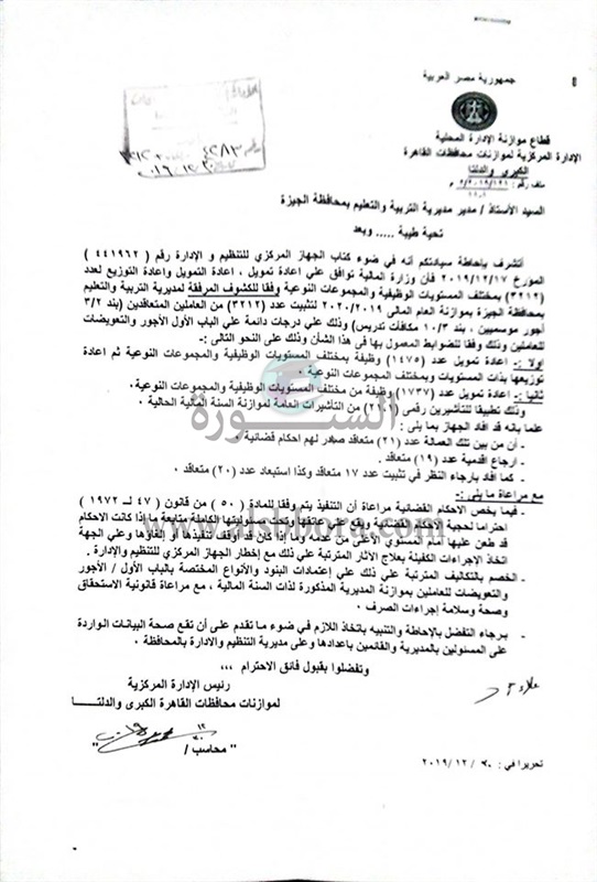 وتم الانتهاء من المذكرة وسوف تعرض على لجنة الموازنة الاثنين وسوف يصدق عليها الدكتور محمد معيط وزير المالية ويتم ارسالها الى مديرية تعليم الجيزة صباح اليوم الثلاثاء.