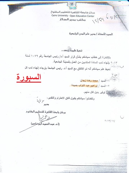 تكشف (السبورة ) بالمستندات عن اكبر كارثة فى تاريخ جامعة القاهرة وهي الاطاحة بعدد (90 موظف) بمركز التعليم المفتوح مرة واحدة دون ابداء اى اسباب ، منهم حوالى (20) موظف تفانوا خلال اكثر من (22 عام) في وقت الذي كان العاملون بالجامعة يتخوفون من الالتحاق بالعمل بالتعليم المفتوح، قالت مها عمر الموظفة بجامعة القاهرة بدلاً من ان نكرم، تم اهانتنا وطردنا من المكان دون ادنى ذنب واتحدى ان يكون واحد من الـ (20 موظف) من له تحقيق او مخالفة او تأخير ولو دقيقة عن العمل فهل يعامل الموظف الكفء هكذا فى عهدك يا يا دكتور جابر اين الانصاف، وعند تخفيض الزيادة كما قلت تخفض من هم اساس المكان ودربوا من فيه ومن يتولون المسئولية دون تقصير ام المخالفين ومن عليهم خطوط عريضة وتبديد عهد وخصومات لعدم الاتزام والعمل!؟؟؟.اشارت ان الكارثة وهو فتح عدد (7) برامج جدد وتحديث باقى البرامج (الكليات) الخاصة بالتعليم المفتوح مع كم هائل من الكتب الذى لا حصر له مما اضررنا الى ان نطلب من رئيس المركز مضاعفة العمالة فوافق على ان نستعين باربعة فقط من المركز ولحسن الحظ كان ده باعلان بتوقيع مدير المركز لدرجة اننى اجلت اجراء جراحه هامة حتى ننقذ الدنيا لاننا تفاجئنا بفتح البرامج الـ (7) ويجب ان يوفر للدارس الكتاب خاصة وانه بالفعل بدء التسجيل دون علمنا وفعلاً طلعنا الترم الاول وشكرنا مدير المركز وبعده الترمات (الثانى والثالث والرابع) مع وعده لنا بزيادة العاملين وانى انتقى اى واحد فى اى ادارة اشوفه مناسب،،الخ. ثم فوجئنا بدلاً من ان ياتى لنا باربعة من العاملين تم الغاء (4) من اكفأ العاملين المدربين وعندما علم العاملون بالمركز ان ده قرار متخذ بمجلس الإدارة بناءً على طرح من مدير المركز لرئيس الجامعة بتخفيض العمالة علشان المكافأت والفائض وخلافه ،،الخ. طلب المنتدبون من مدير المركز ان يتنازلوا عن حقوقهم فى مقابل ان يتركوا بامكانهم التى لا يعرفون غيرها ومنهم من وصل الى مكانه اجتماعية وتولى رئاسة المكان بعد جهد وتعب خلال اكثر من عشرون عامًا، بل منهم من هم بالجامعة تحت التوزيع وسوف يضيعون ولم يرتكبوا اى ذنب، فوافق مدير المركز وطلب منهم ان يكتبوا مذكرة ليرفعها الى رئيس الجامعة وبالفعل كتبوا المذكرة وسلموها للمدير واثناء انتظارهم للرد، كان الرد عليهم بالغاء انتداب (عدد 70 موظف) نعم سبعون مرة واحده وايضًا عليهم ان يخلوا المكان الان، وفى حالة من الذهول ذهبوا الى رئيس الجامعة ومقابلة مدير مكتبه قالهم انسوا يا جماعة قرار لا رجعة فيه، لا رجعة فيه:طيب اللى حصل بعد كده ده ايه، استثناءات للبعض بتأشيرة مدير مثل:السيد/ محمد رضا زيدان رئيس قسم شئون العاملين السيد/ ابراهيم عبد التواب سائق مدير المركز.- ده غير التلاعب فى القرارات يعنى مثلاً القرار نازل باسم/ كمال احمد واتوزع على هذا الاساس، رجعوا قالوا لا ده المقصود اسم/ كامل ابو السعود هو اللى يمشى وانتم عارفين فيه تطابق كبير فى حرف الـ (كاف) وبالفعل مشى كامل ابو السعود واسمه لم يكن مدرج اصلاً.كما تم عمل استثناءات ؟؟؟ على سبيل المثال لا الحصرررررر، محمد رضا- ابراهيم عبد التواب- رحاب يسرى (ورفضت وتمسكت بالالغاء علشان زمايلها)_ عاطف ابو الحمد (تمسك ايضاً بالالغاء ) ودى بقى قصة لوحدها سبق الكتابة عنها فى حلقة منفرده (6).وتضاربت القرارات خلال شهر واحد بعد مذبحة العاملين واصبح من بالمركز كقطع الشطرنج (وللعلم جميع صور القرارات متفره وسوف ننشر البعض على سبيل المثال) ولكن علشان انشرها عايزه صفحات وصفحات اختصرت البعض منها كتابة فى الاتى:بداية القرارات بالمركز والتخبط والعشوائية وتضاربها بعد بتاريخ 9/10/ 2013 ( القرار ، عكسه) ، وتحديدًا بعد اول قرار بالغاءات الندب والذى ذكر فيه انه بناءً على حاجة الاماكن الى المنتدبين؛ وللعلم انه قرار متخذ مسبقًا فى مجلس الإدارة الاخير قبل تاريخ 9/10/2013.1- شئون العاملين:الغاء ندب السيد/ عاطف أبو الحمد (باقى له شهرين للمعاش)، ثم يستثنى على ان يمسك خزينة المركز وبناءً عليه قرار للسيد / اي