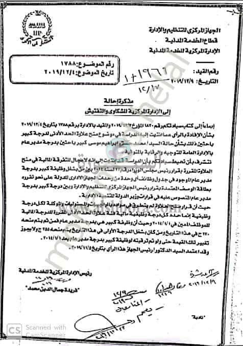 التنظيم والادارة يحدد الحد الادنى لعلاوة درجة كبير.. ننشر التفاصيل والمستندات