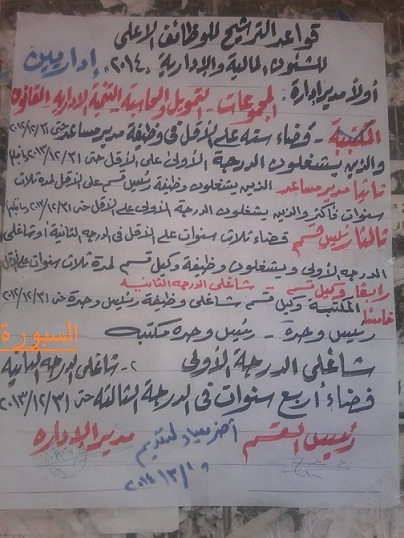 اضاف على سبيل المثال فى ادارة شرق المحله الكبرى تم تولى بعض الاداريين مناصب داخل الادارة وتم رفض المعلمين الذين تقدموا من ضمن احد هؤلاء المعلمين عبدالعزيز السيد كامل الذى تقدم بشكوى ولم يلفت له .